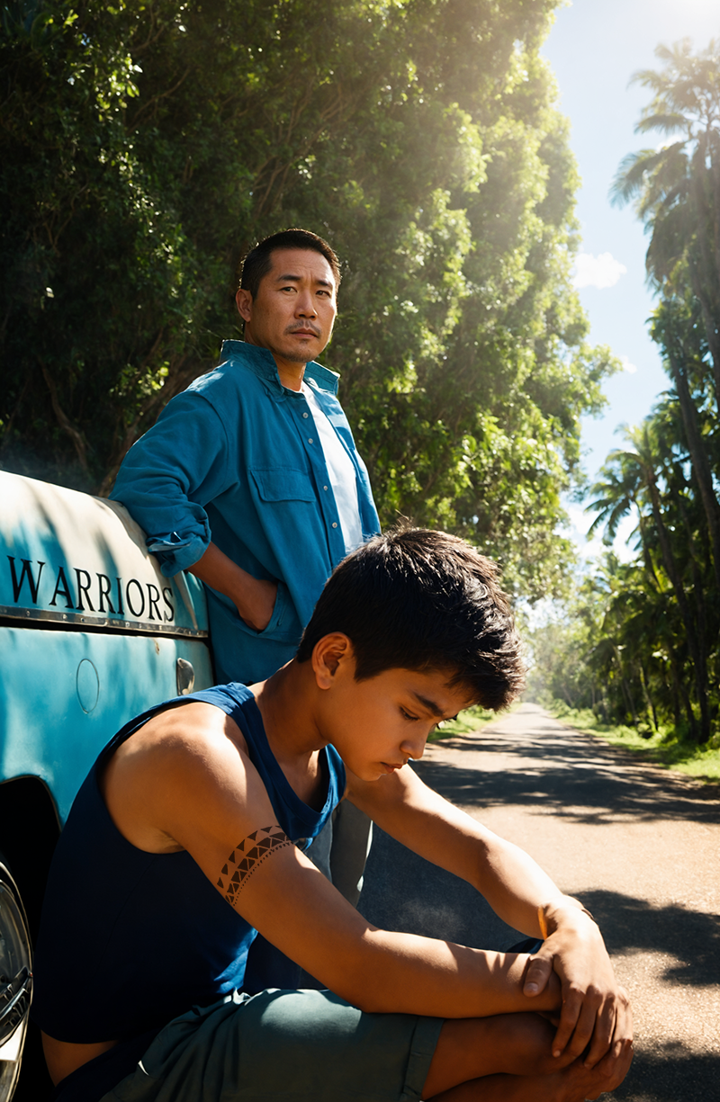 A father-son relationship is tested when Kimo, 16, skips school to get a tattoo. As his father drives them home, a flat tire sends Kimo’s father out on foot to get a spare. Hoping to impress his father, Kimo attempts to remove the flat tire on his own, but soon finds himself pinned under the crushing weight of the truck. When his father returns, they must summon all of their strength and ingenuity to pull off the impossible.